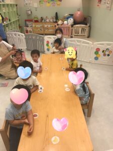 【食育】青いバナナを触ったよ 保育あれこれ 2023.09.21 今日は9月の食育がありました。ついに来ました‼待ってました~~♬ みんなの大好きな♡バナナです🍌 青いバナナが出てくるとみんな「わあ~!!」「きゃー!!」と大興奮( ^^) 一人一人ちょんちょん、と触りました。 自分の目の前にバナナが来ると目を大きくして、初めて見る青いバナナに興味深々でした。 黄色になって食べごろになる迄、変化を見るのがまた楽しみです♬ 来月の食育もお楽しみに(^^)/