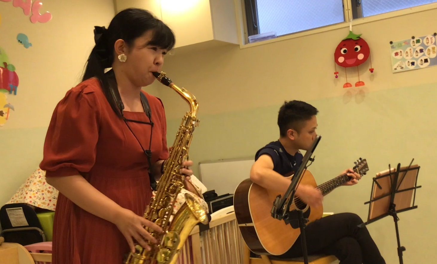 【音楽会】9月の音楽会~アルトサックス 保育あれこれ 2023.09.22 かえでの樹保育園 板橋本町の毎月の音楽イベント。9月はアルトサックスとギターの生演奏でした♪ジブリにコナン、秋の童謡。童謡楽器を紹介してもうコーナーや、 音楽に合わせて体を動かすリトミックなど盛りだくさん。子供たちも大盛り上がりでサックスの音色を楽しみました♪